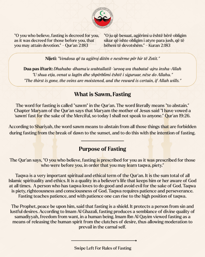 Le të jetë një muaj i forcimit të besimit, i bashkimit dhe i bujarisë për komunitetin tonë.